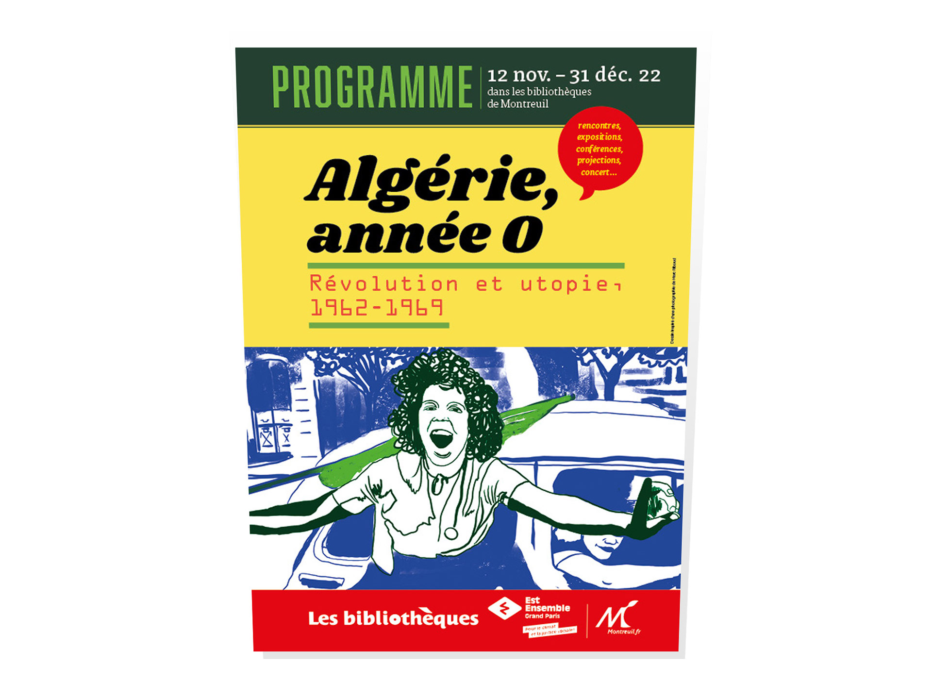 Mairie de Montreuil – Conception et réalisation d'un programme de huit pages pour les bibliothèques de Montreuil sur le thème "Algérie, année 0"